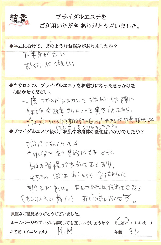 安心しておまかせできたブライダルエステでした